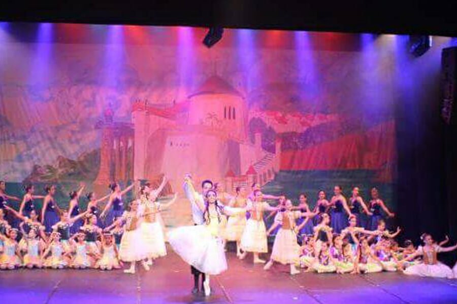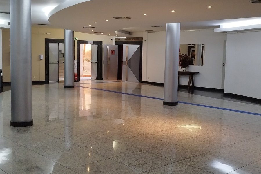 Proscênio: boca de cena de 3 metros de profundidade por 14 metros de comprimento. Pé direito de 5,5 metros.