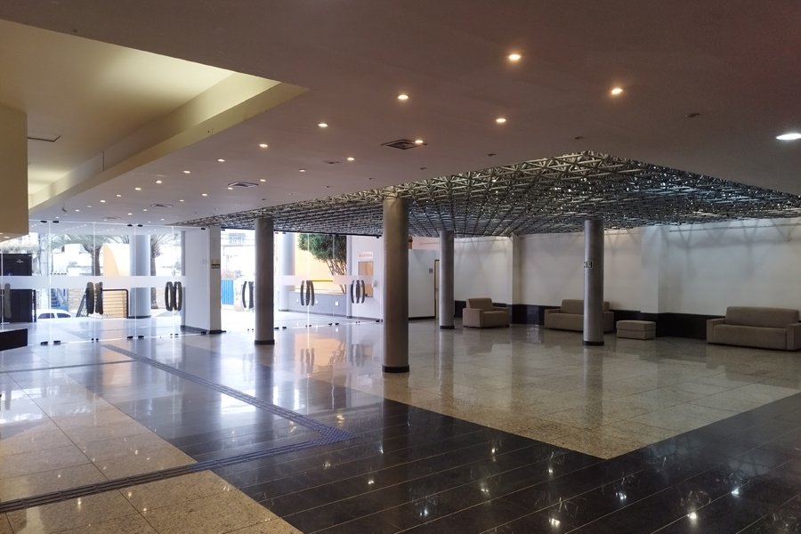 com 4 banheiros (2 acessíveis), 2 bebedouros, sala de apoio de 30 m² e stand para vendas ou exposições de produtos, com a disponibilidade de até 5 camarins.